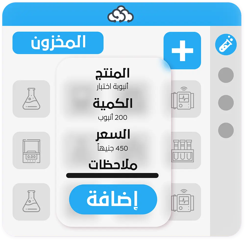 إدارة مخزون المختبر تشمل تسجيل بيانات الموردين المتعاملين مع المختبر، بالإضافة إلى تفاصيل أنواع المنتجات الموجودة في المخزن والكميات الحالية لكل منتج. يتضمن النظام تحديد الكميات التي تستدعي التنبيه لإعادة الطلب من الموردين. كما يتم إدارة طلبات الشراء وإضافة مدفوعات الشراء للموردين.