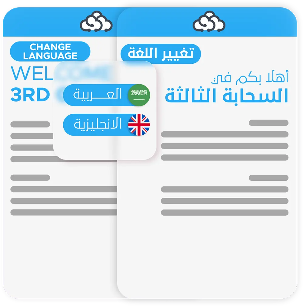 يدعم اللغتين العربية و الإنجليزية و يمكن إضافة لغات أخري