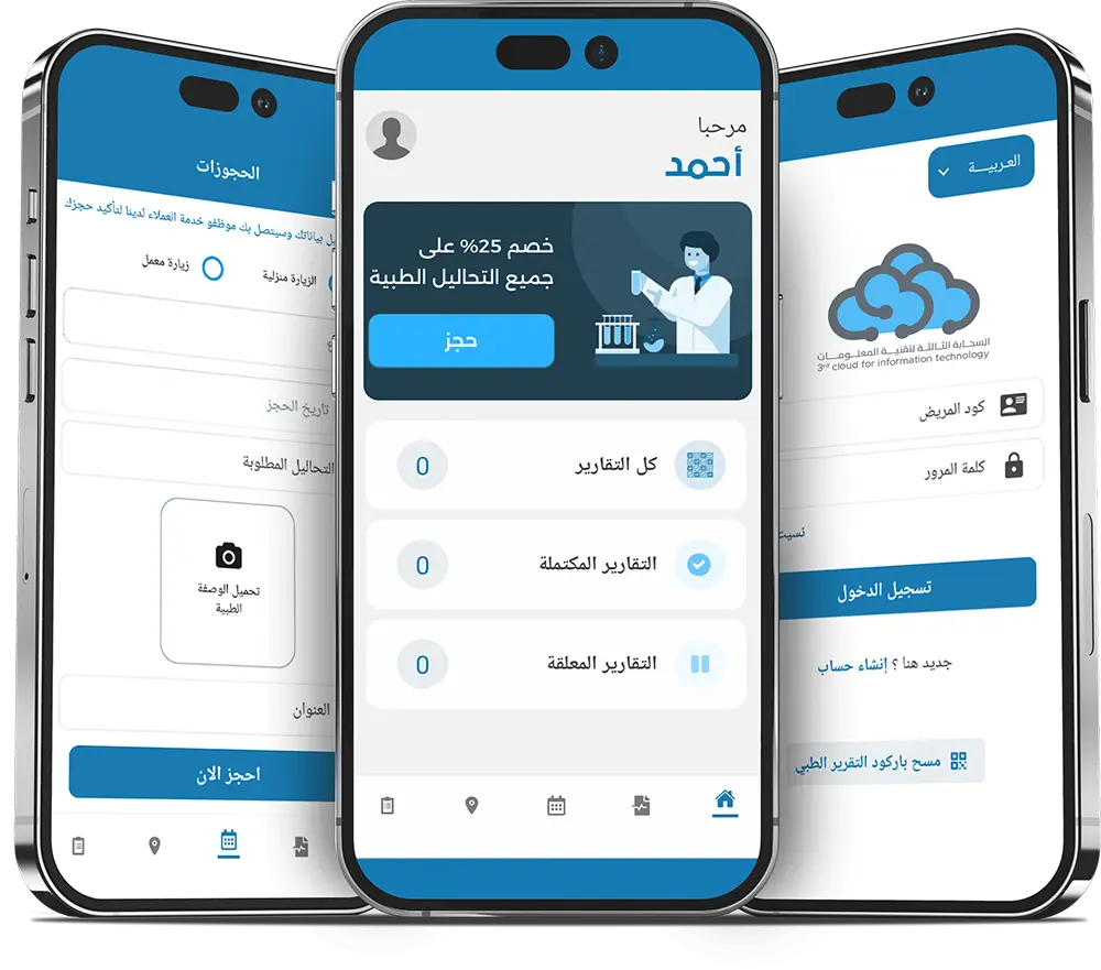 تطبيق موبايل يسهل للعميل الحصول على النتائج و حجز الزيارات