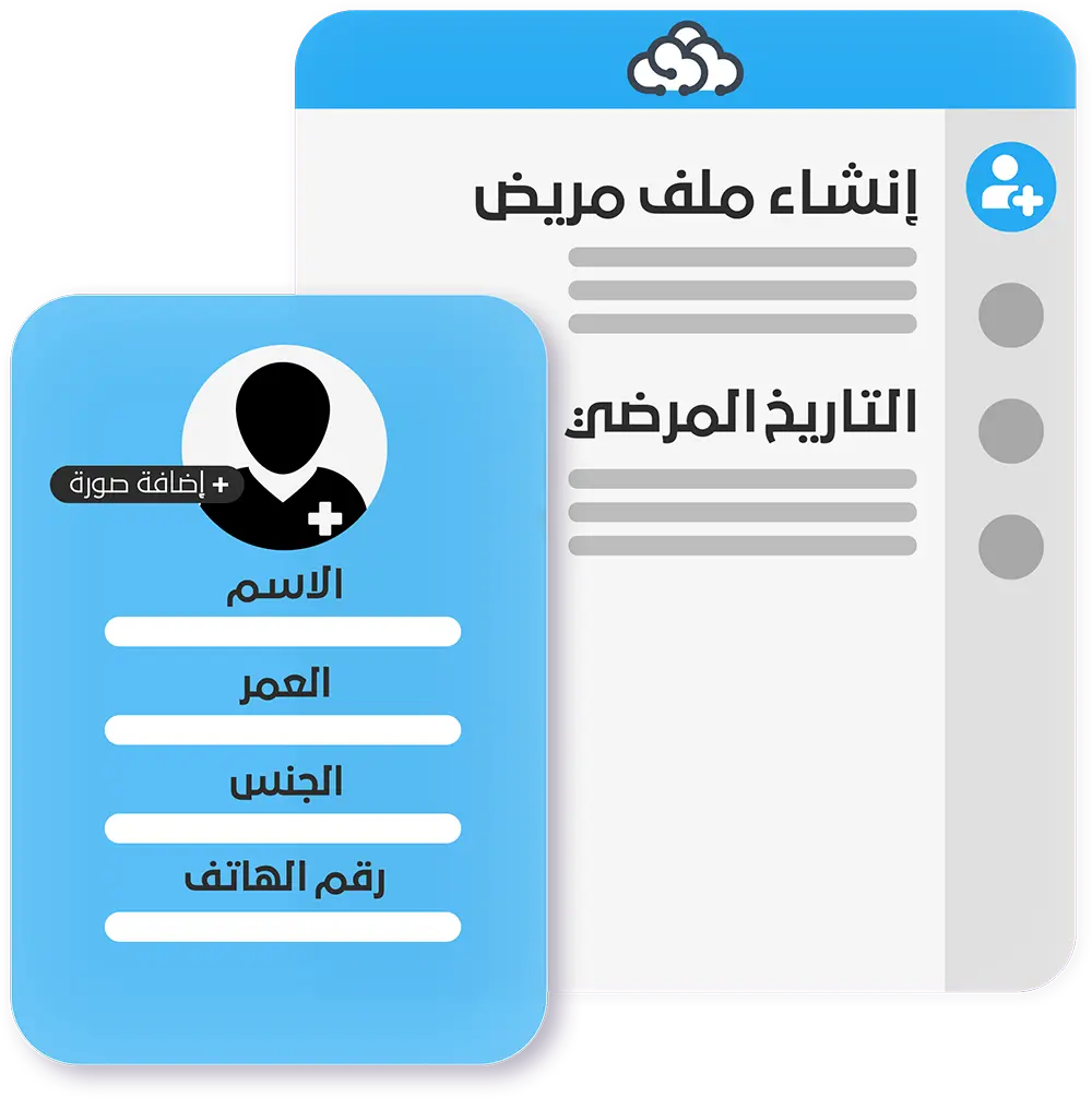 إنشاء ملف للمريض بكامل بياناته مثل الإسم و الجنس و العمر و رقم الهوية و رقم الهاتف و بيانات شركة التأمين و تاريخه المرضي اذا كان يعاني من أي مريض
