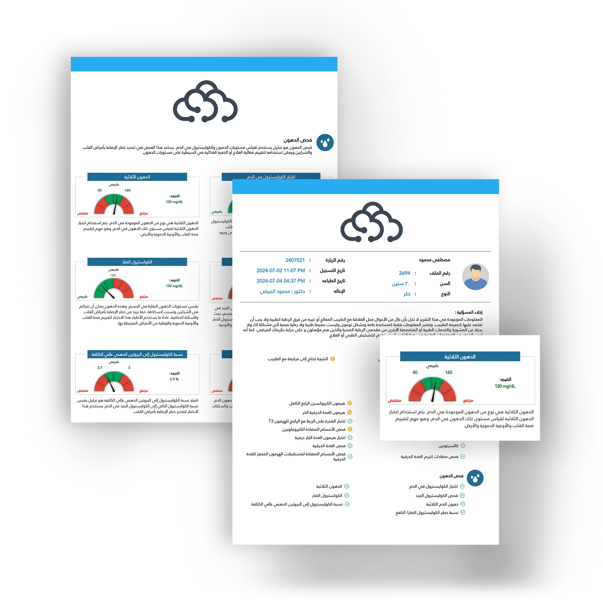 يتم تقديم نتائج الفحوصات بطريقة بسيطة ومفهومة للعميل حيث يكون التقرير باللغة العربية و يحتوي على رسوم بيانية وصور توضيحية تتغير وفقًا لنتائج العميل , يحتوي التقرير على شرح اهمية كل إختبار و وتفسير حالة المريض إذا كانت النتيجة طبيعية أو غير طبيعية و النصائح التى يجب ان يتبعها المريض للوصول إلى حالة صحية أفضل .