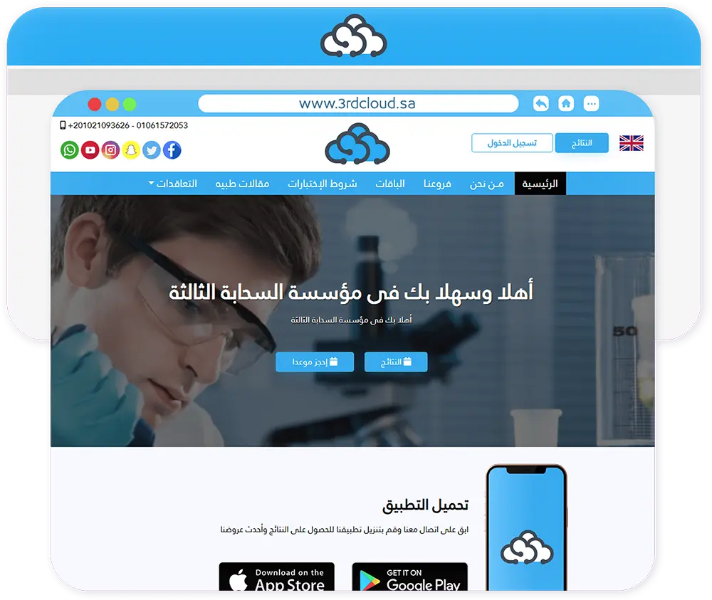 موقع تعريفى للمختبر لعرض البيانات الأساسية للمختبر مثل رقم الهاتف و وسائل التواصل الإجتماعي و عرض بيانات و عناوين فروع المختبر .