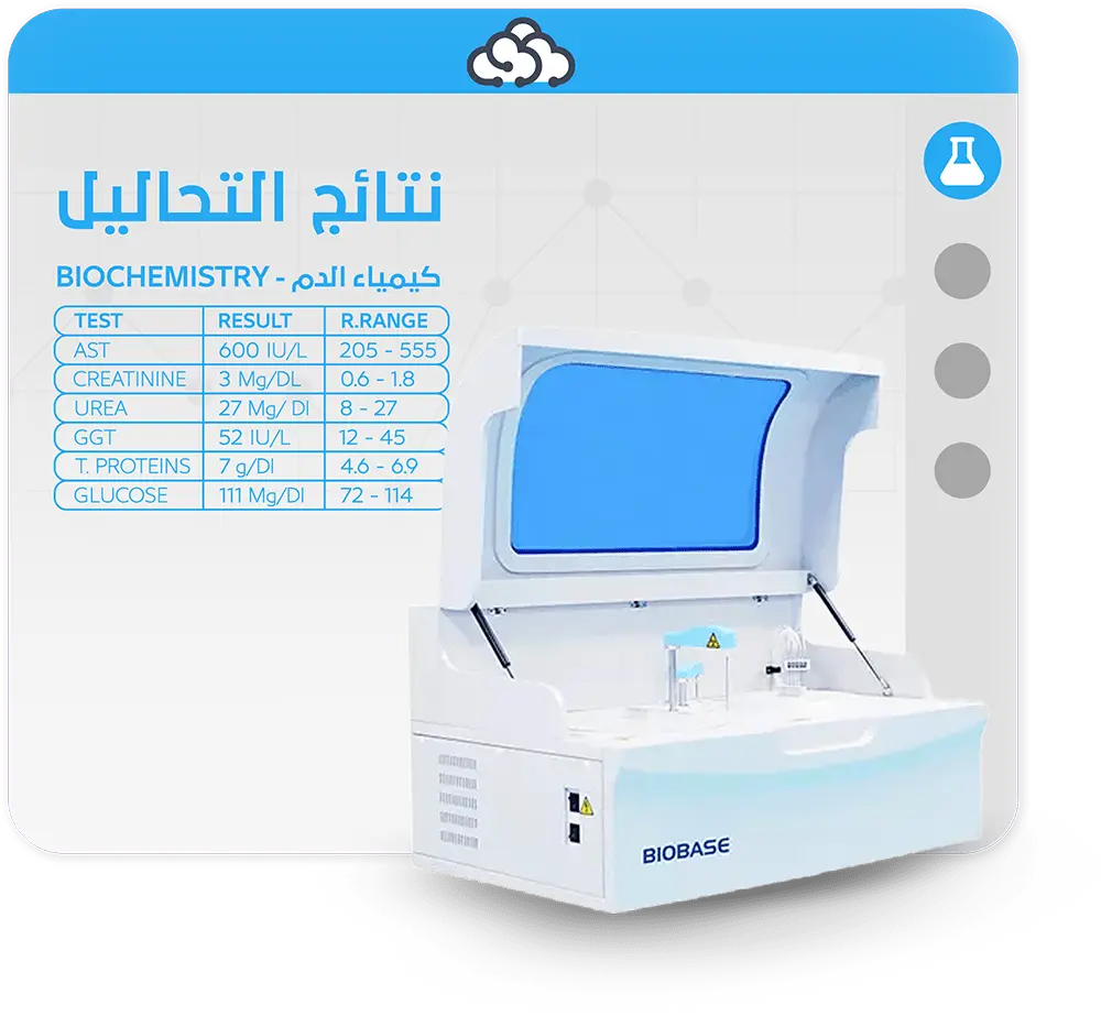 يساعد التطبيق على توفير ربط آلي بين الأجهزة الطبية والنظام، مما يسهل عملية إدخال نتائج العينات باستخدام رقم الباركود الذي يتم طباعته من النظام حيث تقوم الأجهزة الطبية بإرسال نتائج العينات مباشرة إلى التطبيق، والذي بدوره يقوم بإرسال هذه النتائج إلى النظام وحفظها تلقائيًا دون تدخل أي موظف داخل المختبر مما يساعد على توفر الوقت والجهد، ويقلل من الأخطاء البشرية المحتملة في إدخال النتائج.