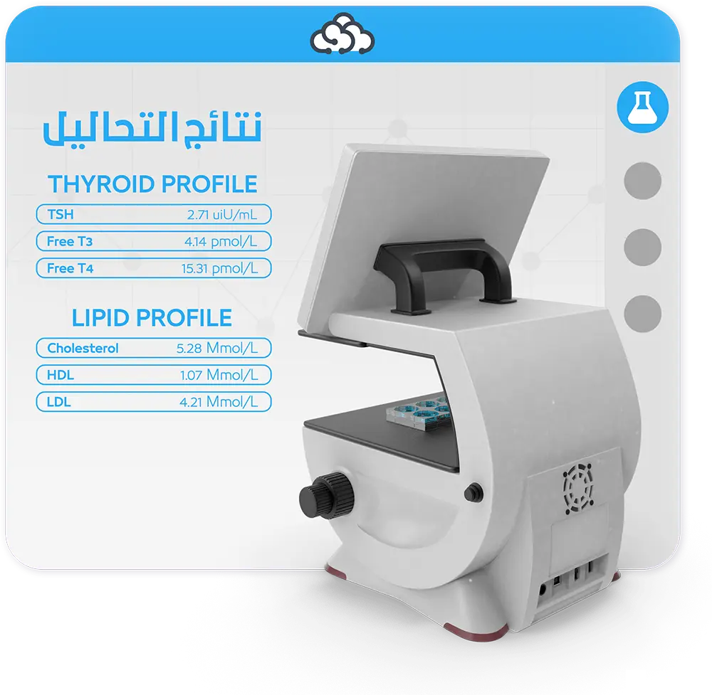 يساعد التطبيق على توفير ربط آلي بين الأجهزة الطبية والنظام، مما يسهل عملية إدخال نتائج العينات باستخدام رقم الباركود الذي يتم طباعته من النظام حيث تقوم الأجهزة الطبية بإرسال نتائج العينات مباشرة إلى التطبيق، والذي بدوره يقوم بإرسال هذه النتائج إلى النظام وحفظها تلقائيًا دون تدخل أي موظف داخل المختبر مما يساعد على توفر الوقت والجهد، ويقلل من الأخطاء البشرية المحتملة في إدخال النتائج.